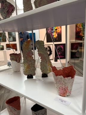 In December 2024, I participated in a collaborative exhibition at Karlstad Art Gallery, presenting a series of vases sculpted from paper clay and painted with acrylics. These works explored the theme of resilience by embracing the cracks and scars within their forms — symbols of the strength and beauty that emerge through imperfection. By working with recycled paper clay, the pieces carried forward my practice of transformation and renewal, turning fragile material into vessels of endurance and quiet power.